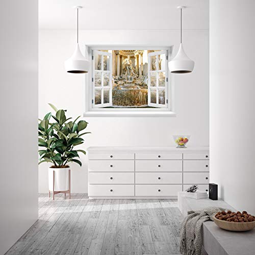 Wandmotiv24 Adesivo da Parete 3D Fontana di Trevi in Rome, Design 03, 90x70cm (BxH), Decorazione, murale, Finestra, Apertura, varco M0801