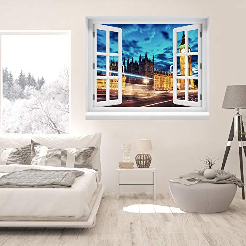 Wandmotiv24 Adesivo da Parete 3D Big Ben Londra, Design 03, 60x47cm (BxH), Decorazione, murale, Finestra, Apertura, varco M0248