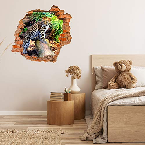 Wandmotiv24 Adesivo da Parete 3D Piccolo Leopardo, Design 02, 120x110cm (BxH), Decorazione, murale, Finestra, Apertura, varco M1060