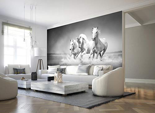 Wandmotiv24 Foto Murale cavalli bianchi sogno XS 150 x 105 cm - 3 parti foto, sfondi in tessuto non tessuto M0489