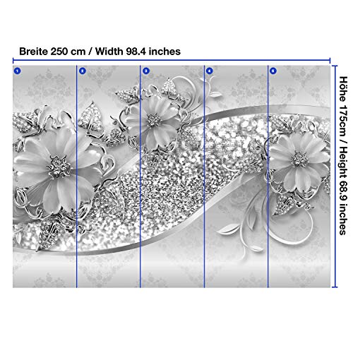 Wandmotiv24 Foto Murale fiori grigi diamanti M 250 x 175 cm - 5 parti foto, sfondi in tessuto non tessuto M3798