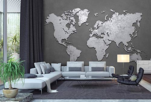 Wandmotiv24 Foto Murale Mappa del mondo metallica L 300 x 210 cm - 6 parti foto, sfondi in tessuto non tessuto M1442