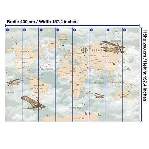 Wandmotiv24 Foto Murale mappamondo XXL 400 x 280 cm - 8 pezzi foto, sfondi in tessuto non tessuto M1845