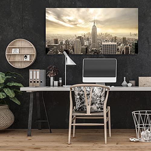 Wandmotiv24 Fotografia su Tela Veduta Aerea di New York 100x50cm (LxH) Fotografia, Tela, Foto Regali, Decorazione Moderna M0221