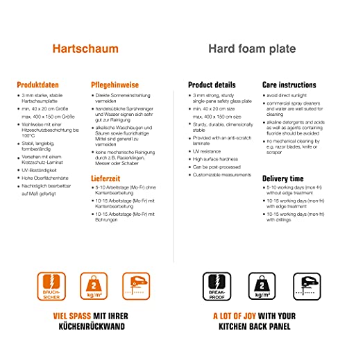 QUALITÀ: I paraspruzzi della cucina sono prodotti con una stampa di qualità ecologica. Il nostro processo di stampa garantisce una riproduzione dei colori brillante e un'esperienza di vita esclusiva nella tua cucina.