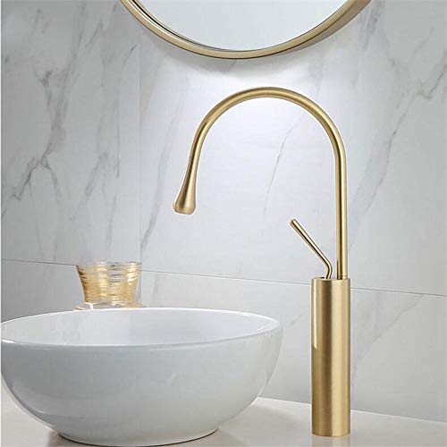 WANDOM Rubinetto per lavabo Bagno Oro satinato Miscelatore ottone massiccio Costruzione rame Rubinetti per lavabo semplice stile nord Europa Rubinetto per lavabo @ brushed_gold_tall