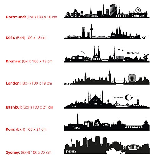 Wandora Graz Design W1366 - Adesivo da parete, motivo: skyline di Roma, 100 x 21 cm, colore: Nero