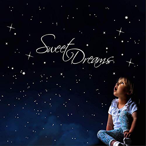 Wandtattoo-Loft Adesivo Murale Sweet Dreams con Stelle in der Colore Bianco + 203 Fluorescente Adesivo Leggero (Luci al Buio)