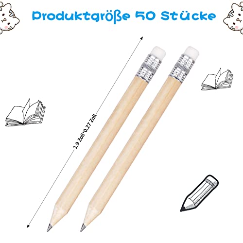 WangCang 50 mini matite con gomma #2B, mezza penna da 10 cm, per scrivere, disegnare, schizzi, golf, aule e articoli per feste (colore legno)