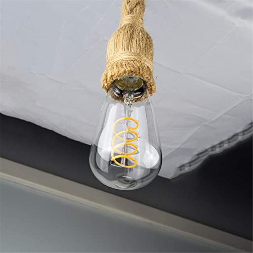 WANGCL Lampada a Sospensione a Soffitto in Corda di Canapa, Lampada a Sospensione in Corda Vintage da 1 Metro a Doppia Testa Base E27, Lampada a Sospensione