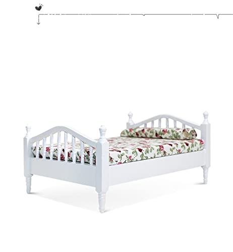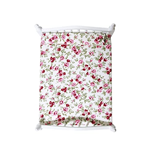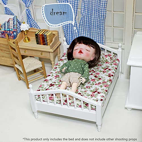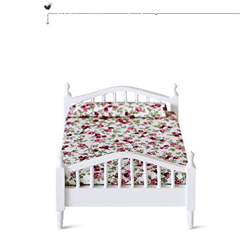WANGCL Lettino per Bambole 1/12 in Miniatura Letto Matrimoniale in Legno per Bambole Barbie Decorazione Letto per Bambole - Motivo Floreale