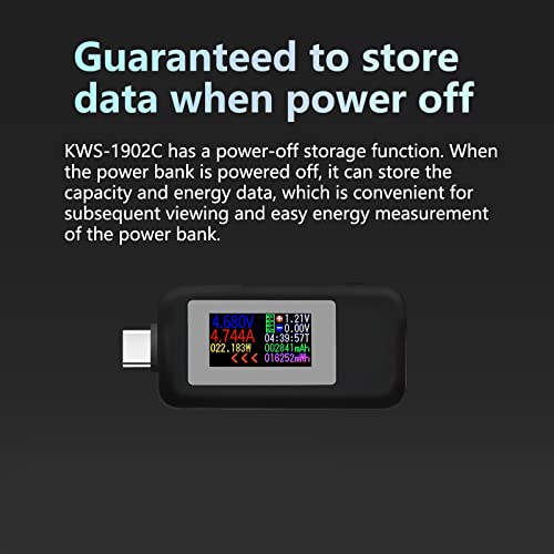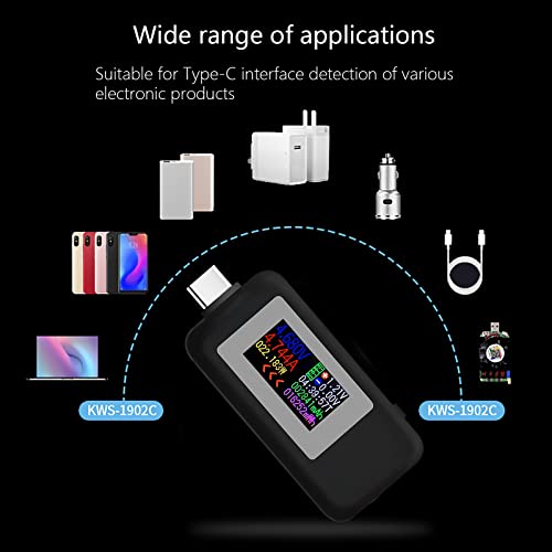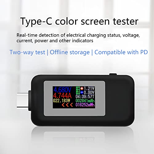 WANGCL Misuratore bidirezionale di Tipo C Misuratore di Potenza Digitale Tester di Tensione Misuratore di Corrente Tester di capacità Tester Supporto per Samsung /QC2.0/QC3.0/PD- Nero