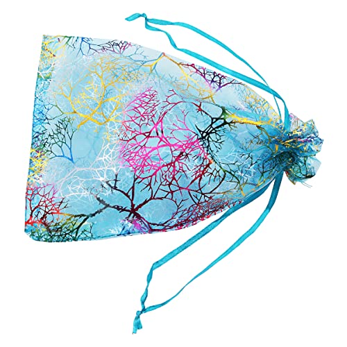 WANGCL 100 Sacchetti in Organza, Motivo Corallo, con Coulisse, per Caramelle, bomboniere, 13 x 18 cm, Colore: Blu