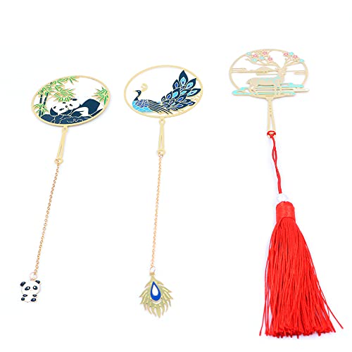 WANGCL Segnalibri classici vintage in metallo, 3 pezzi segnalibri classici a forma di libro con catena in oro con scatola regalo per lettori, donne e bambini, pavone, panda, cervo sika