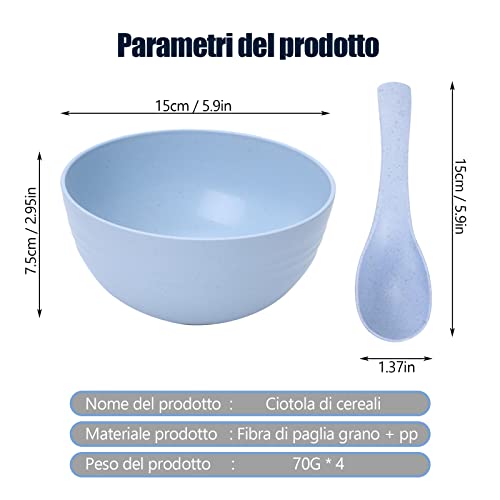 【Set di ciotole per la famiglia perfette】 - Le nostre ciotole per zuppa sono di grandi dimensioni (26 OZ), un set completo di coltellerie si unisce nella confezione, con un cucchiaio da 4 pezzi realizzato con lo stesso materiale dei piatti. La ciotola in fibra e i set di coltelleria sono disponibili quattro colori che sembrano colorati e adorabili, lo speciale design rotondo è carino e attraente per i bambini.