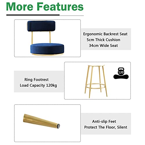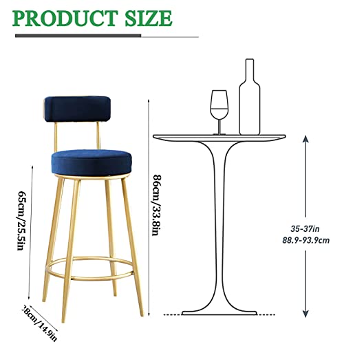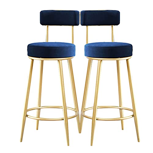 WANGFENG Sgabelli Alti 2 Pz, Sgabelli da Bar Set di 2 Sedile Imbottito in Velluto con Schienale e braccioli in Metallo Gambe Cucina Colazione, Blue