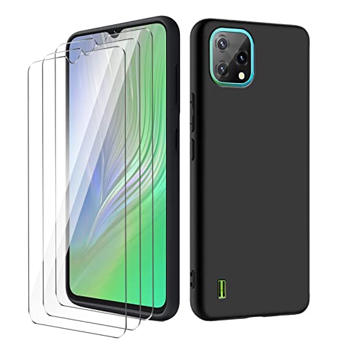 Wanglaism Custodia per Blackview A55/Oscal C60 + 3 pellicole protettive in vetro temperato, TPU silicone nero opaco
