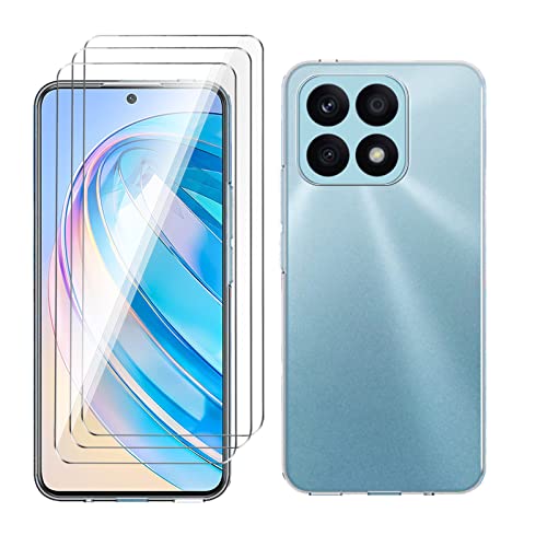 Wanglaism Custodia trasparente per Honor X8a 4G + 3 pellicole proteggi schermo in vetro temperato, TPU morbido trasparente per cellulare Case Cover.