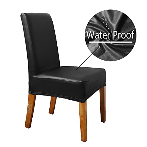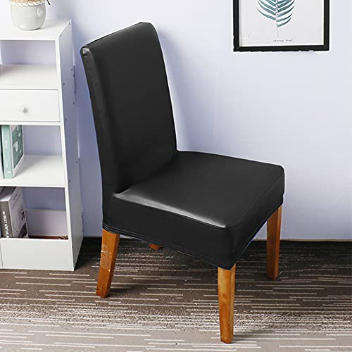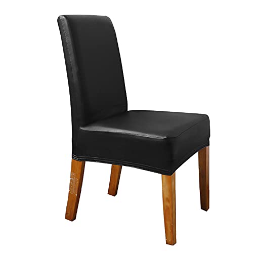 Wangle - Coprisedia in pelle sintetica impermeabile, elasticizzato, con fascia elastica, per sedie per hotel, matrimoni, banchetti, 6 pezzi, colore: nero