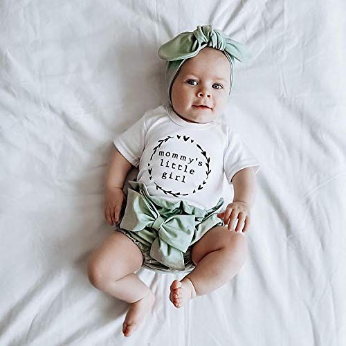 WangsCanis 3PCs Neonato Ragazza Pagliaccetto Tuta Bambino Ragazza Tuta Manica Corta Top Pantaloni Striscianti T-Shirt Sportiva Pantaloncini Bowknot Fascia Vestiti Set Outfit (Bianca, 3-6 Mesi)