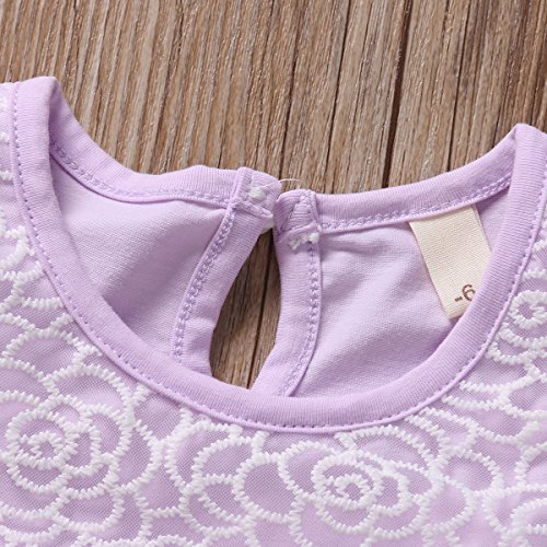WangsCanis Abito da Battesimo per Bambina Neonata con Tulle Pizzo Elegante a Maniche Corte Vestito da Principessa per Festa Cerimonia Compleanno 0-3 Anni (Viola, 18-24 Mesi)