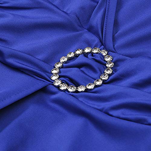 WangsCanis Abito da Sera Cerimonia Donna Estivo Midi Abito Lungo Scollo a V Maniche Corte a Vita Alta Vestito Elegante Vintage (Blu, 3XL)