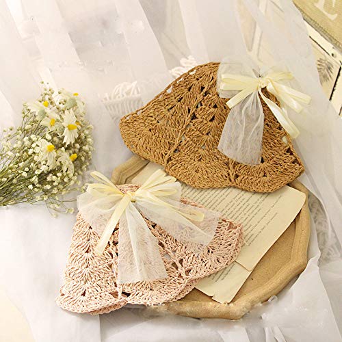 WangsCanis Cappello di Paglia per Bambini Resistente al Sole con Borsacon Fiocco in Pizzo (Rosa B, Taglia Unica(6-24 Mesi))