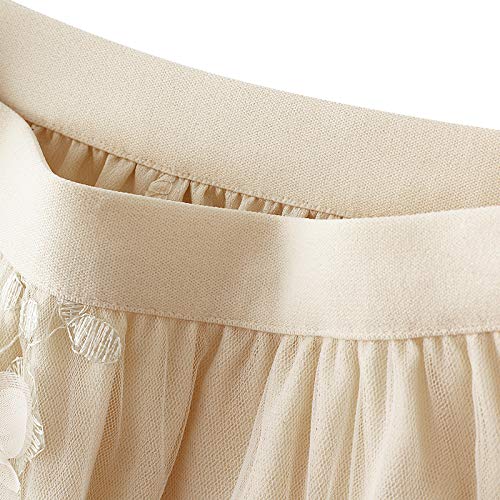 WangsCanis Gonna Maxi Longuette in Tulle per Donna Gonna Lunga in Pizzo a Vita Alta Stampa Floreale Elegante Vintage Casual Vacanza (#03 Ricamo-Beige, Taglia Unica)