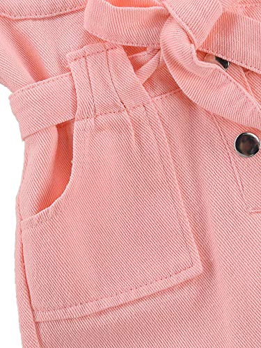WangsCanis Monopezzo Tuta Intera da Ragazza Salopette a Manica Corta per Bambina Neonata Pagliaccetto da Taschino Tinta Unita Felpa Intera da Lavoro (Rosa, 2-3 Anni)