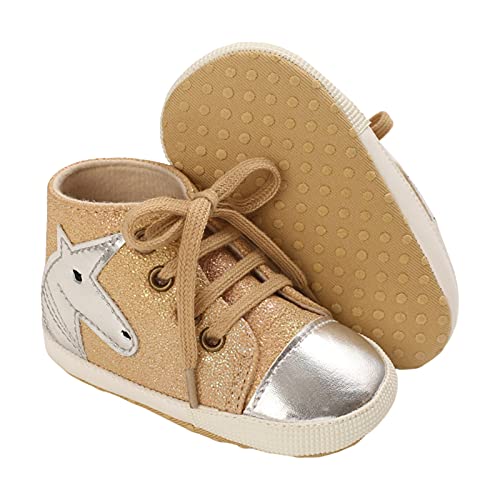WangsCanis Toddler Newborn Baby Girl Sandali Infantili Scarpe Basse Prewalker PU Leather Unicorn High-top Sneakers Bambino Antiscivolo Sport Casual First Walking (albicocca, 9-12 mesi)
