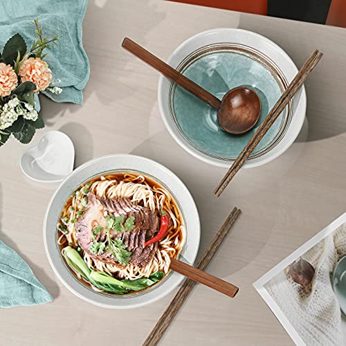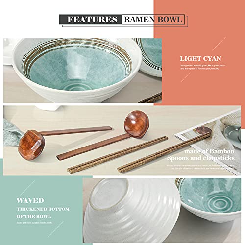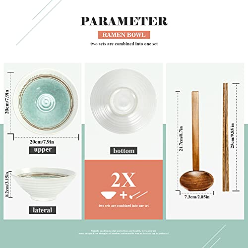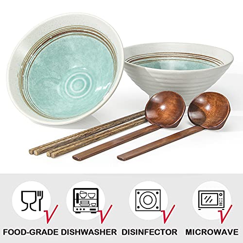 Wangxin Ciotole in ceramica giapponese, 2 set da 900 ml, regalo creativo retrò, con bacchette e cucchiai, adatte al microonde, per insalata di frutta, verdura, pasta (bianco, 2)