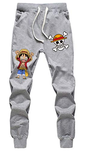 WANHONGYUE Anime One Piece Luffy Pantaloni Sportivi da Jogging Adulto Cosplay Sweat Pants Noos Lungo Trousers con Tasche Grigio 10 XXXL