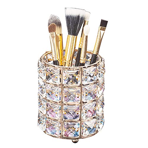 Wankd - Porta pennelli da trucco, per cosmetici e pennelli da trucco, con perline di cristallo, portapenne, portamatite, portamatite, matite, tazze, contenitore argento