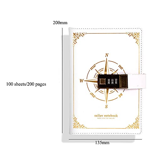 WANLIAN Diario Chiuso a Chiave, taccuino Vintage in Pelle Bianca con Motivo Nautico, con portapenne e Porta Carte, Adatto per diario Personale con codice di Viaggio