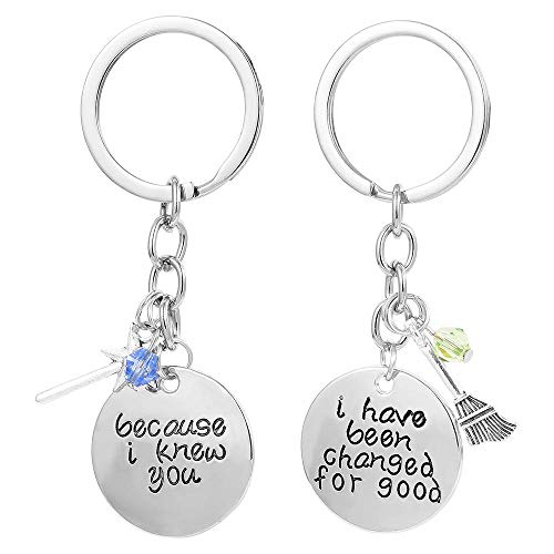 WANM Coppia di Gioielli di Film Portachiavi Wicked The Musical Why I Know You I Have Been Changed for Good Bacchetta Magica Scopa Charms Portachiavi Ciondolo in Lega