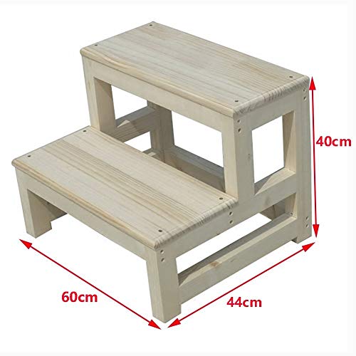 WANNA.ME Scaletta Scaletta in Legno a 2 gradini Scaletta per Scale Scaletta per Scale in Legno massello (Dimensioni: 60 * 44 * 40 cm)
