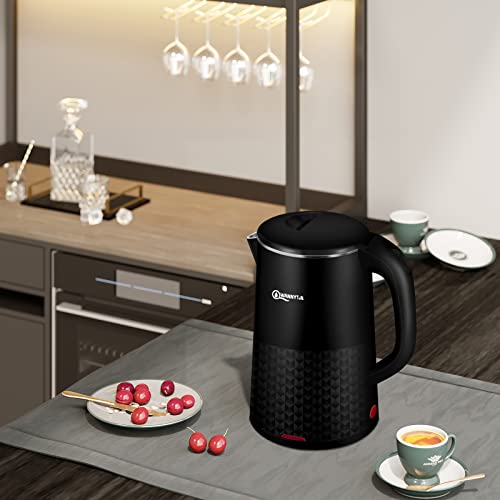 WANNYTON Bollitore Acqua Elettrico da 1,8L, Bollitore in Acciaio Inox con Design a Doppia Parete, Spegnimento Automatico, Protezione Contro Ebollizione a Secco, senza BPA, 1800W, Nero