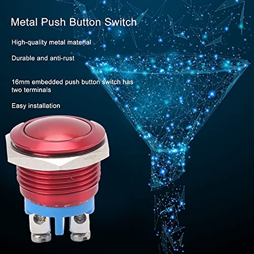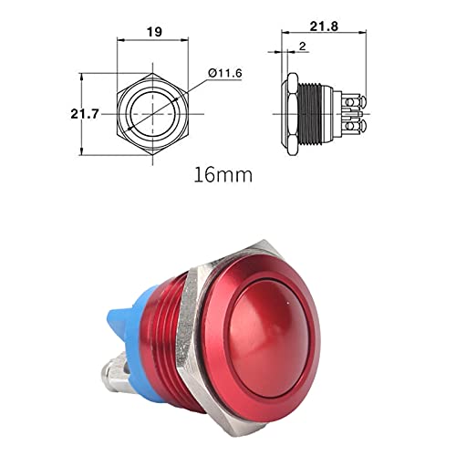 WanRomJun Interruttore A Pulsante in Metallo Auto-ripristinato da 1 Pz 16mm, Piede A Vite Jog con Testa A Sfera 220V Normalmente Aperto Interruttore A Pulsante di Controllo Dell'alimentazione(Rosso)
