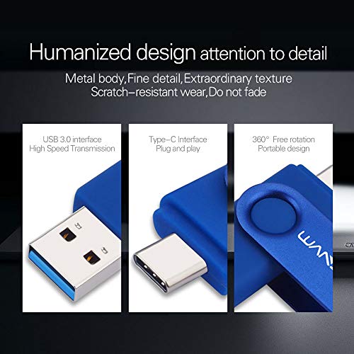 WANSENDA - Chiavetta USB tipo C USB 3.0 da 256 GB, chiavetta USB OTG per dispositivi Tipo-C Android/PC/Mac (256 GB, blu navy)