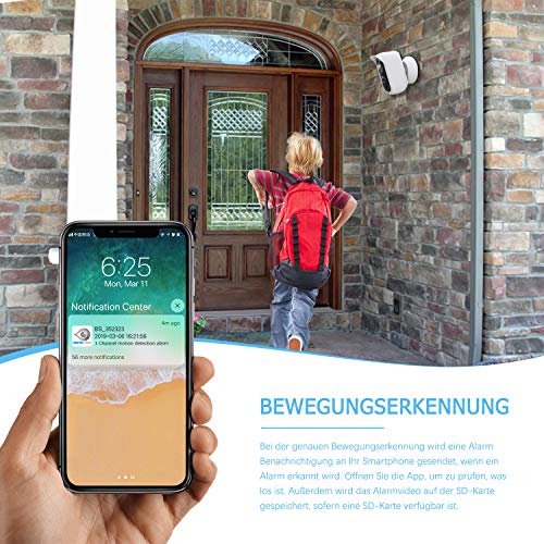 Sensore di movimento PIR incorporato: Questa telecamera di sorveglianza invierà un allarme al vostro smartphone, e registra un breve video sulla scheda SD quando viene rilevato un allarme. La stazione base supporta una scheda di memoria da massimo 64 GB (non inclusa nella confezione). Le registrazioni video possono essere riprodotte tramite l'app gratuita Wansview. (Nota: non compatibile con Synology/NAS).