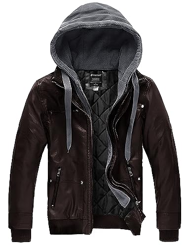 Wantdo Giacca Invernale Giubbotto Pelle con Cappuccio Giacca Invernale da Lavoro Giubotto Invernale Pelle Caffè Scuro S