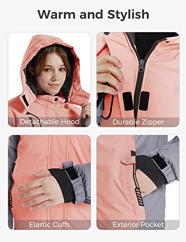 Wantdo Giacca da Snowboard Running Giacca Outdoor Primaverile Parka con Cappuccio Antivento Giubbotto Running Antipioggia Bambina Rosa 140-146