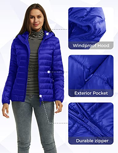 Wantdo Giubbotto con Zip Antivento Piumino Ultraleggero Corto Giacca Piumino Trapuntato Caldo Cappotto Casual Mezza Stagione Donna Blu Zaffiro M