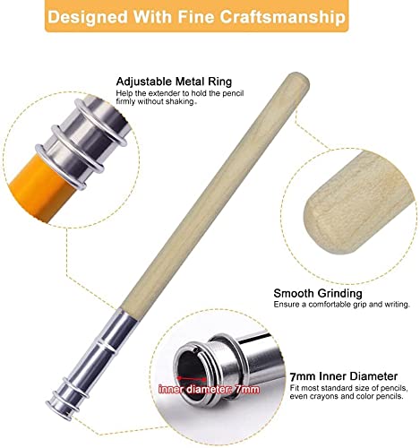 【Durevole e confortevole】Il prodotto è realizzato in legno di alta qualità e acciaio inossidabile, caratterizzato da un'eccellente resistenza all'usura e durata, che garantiscono un servizio di lunga durata. Inoltre, la superficie dell'estensore adotta una levigatura liscia, per garantire una presa comoda e scrivere comodamente riducendo l'attrito tra la matita e la superficie della pelle delle dita e proteggendo le dita.
