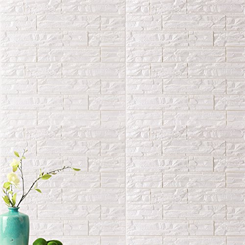 WANWEITONG Carta da Parati Mattoni 3D, Staccabile DIY Carta da Parati Decorativa Autoadesiva Impermeabile per Cucina Ufficio TV Sfondo (12 Pcs, Bianca)