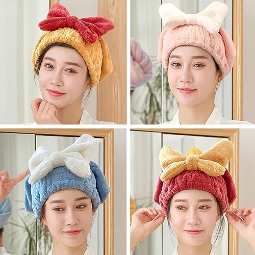 WANWEN Asciugamano Capelli Turbante, Asciugamano Capelli Super Assorbente, Morbido Asciugamani da Doccia per Capelli Bagnati per Donne, per Capelli Lunghi (4 Pcs)