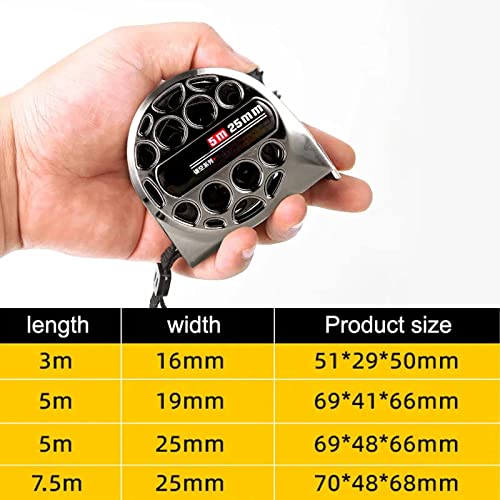 WanWen Righello metrico retrattile anticorrosione in acciaio inossidabile, Metro a nastro metallo, Metro a nastro professionale, design cavo, impermeabile e a prova di caduta (5m 25mm)