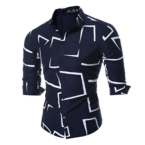 WanYang Uomo Shirt stampate Moda stampa geometrica Girare giù la camicia a maniche lunghe Camicie Casual