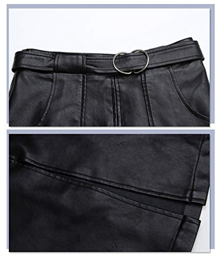 WanYangg Inverno Gonna in Pelle Donna Lunghezza Ginocchia Casuale Vita Alta Ecopelle Classica Mini Aderente Asimmetrica Tinta Unita A-Line Midi Gonna Lunga Club 2# Nero XL