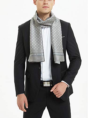 WANYING Uomo Sciarpa di Seta Lungo Doppio Strato in Seta Artificiale Casual Business Gentleman per Primavera Autunno - a pois grigio chiaro